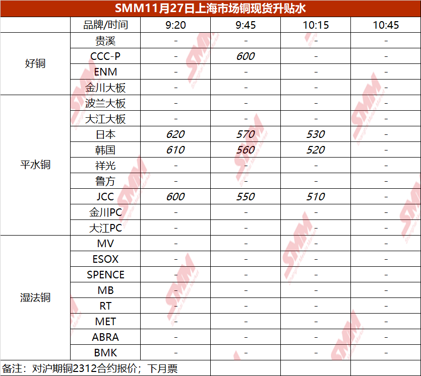 11月27日上海市场铜现货升贴水(第三时段)【SMM价格】