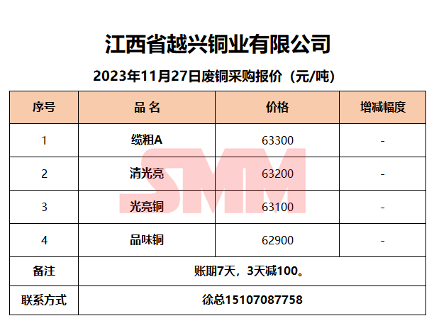 11月27日江西越兴 废铜采购报价