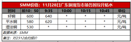 11月28日广东铜现货市场各时段升贴水(第一时段9:30)【SMM价格】