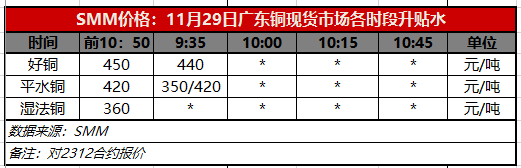 11月29日广东铜现货市场各时段升贴水(第一时段9:30)【SMM价格】