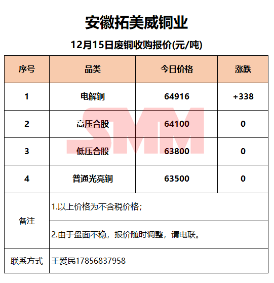 今日安徽拓美威,废铜收购报价已更新,有货的朋友欢迎联系我们!