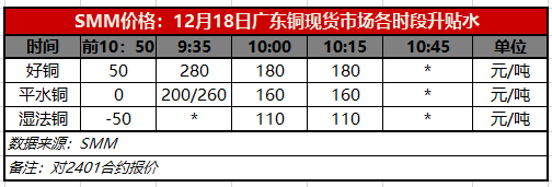 12月18日广东铜现货市场各时段升贴水(第三时段10:15)【SMM价格】