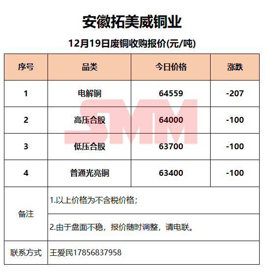 今日安徽拓美威,废铜收购报价已更新,有货的朋友欢迎联系我们!