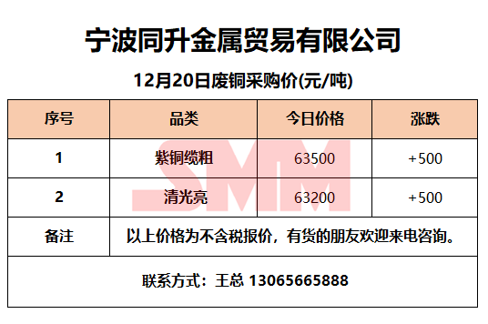 今日宁波同升金属,废铜采购报价已更新,有货的朋友欢迎联系我们!