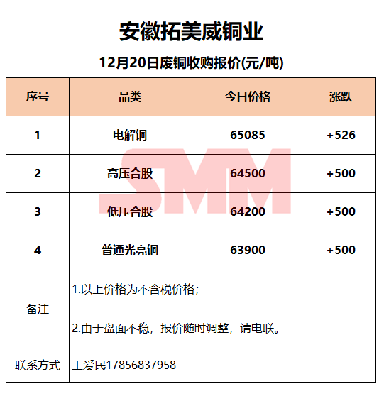 今日安徽拓美威,废铜收购报价已更新,有货的朋友欢迎联系我们!