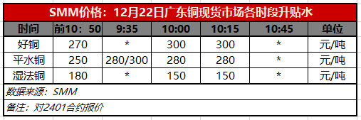 12月22日广东铜现货市场各时段升贴水(第三时段10:15)【SMM价格】