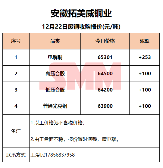 今日安徽拓美威,废铜收购报价已更新,有货的朋友欢迎联系我们!
