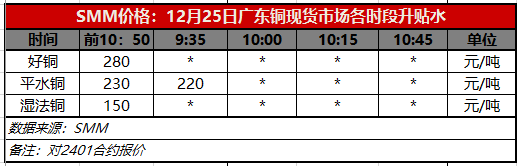 12月25日广东铜现货市场各时段升贴水(第一时段9:30)【SMM价格】