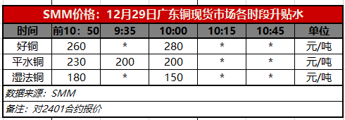 12月29日广东铜现货市场各时段升贴水(第二时段10:00)【SMM价格】