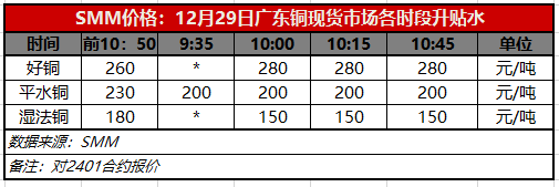 12月29日广东铜现货市场各时段升贴水(第四时段10:45)【SMM价格】