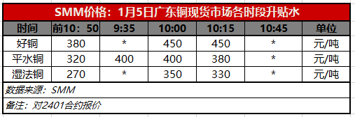 1月5日广东铜现货市场各时段升贴水(第三时段10:15)【SMM价格】