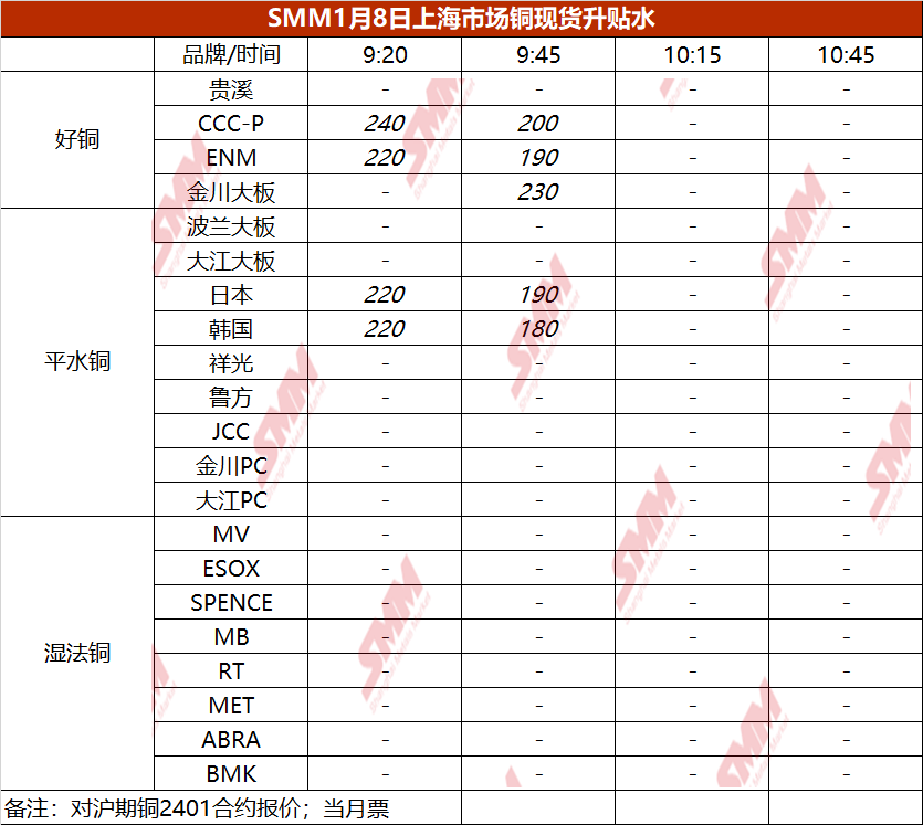 1月8日上海市场铜现货升贴水(第二时段)【SMM价格】