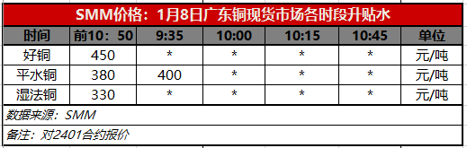 1月8日广东铜现货市场各时段升贴水(第一时段9:30)【SMM价格】