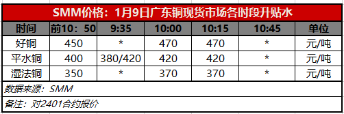 1月9日广东铜现货市场各时段升贴水(第三时段10:15)【SMM价格】
