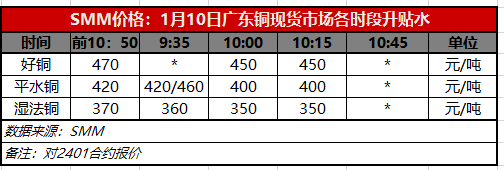 1月10日广东铜现货市场各时段升贴水(第三时段10:15)【SMM价格】