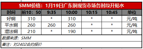 1月19日广东铜现货市场各时段升贴水(第二时段10:00)【SMM价格】