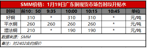 1月19日广东铜现货市场各时段升贴水(第三时段10:15)【SMM价格】