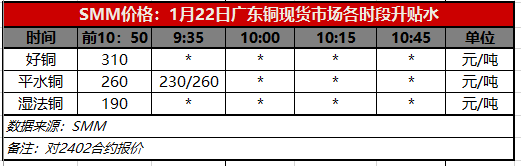 1月22日广东铜现货市场各时段升贴水(第一时段9:30)【SMM价格】