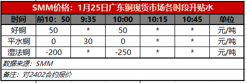 1月25日广东铜现货市场各时段升贴水(第二时段10:00)【SMM价格】