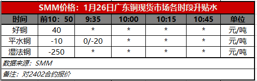 1月26日广东铜现货市场各时段升贴水(第一时段9:30)【SMM价格】