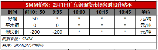2月1日广东铜现货市场各时段升贴水(第一时段9:30)【SMM价格】