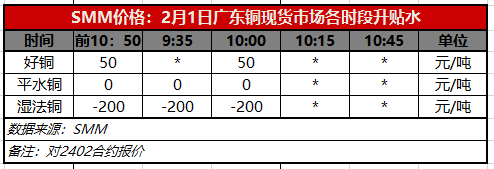 2月1日广东铜现货市场各时段升贴水(第二时段10:00)【SMM价格】