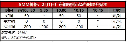 2月1日广东铜现货市场各时段升贴水(第三时段10:15)【SMM价格】