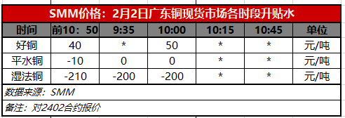 2月2日广东铜现货市场各时段升贴水(第二时段10:00)【SMM价格】