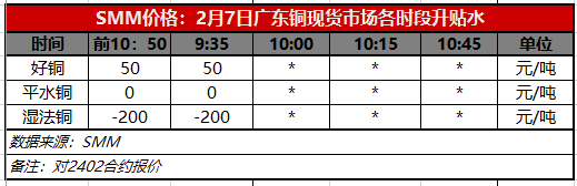 2月7日广东铜现货市场各时段升贴水(第一时段9:30)【SMM价格】