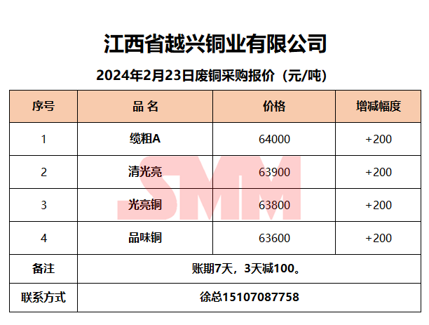 今日江西越兴,废铜采购报价已更新,有货的朋友欢迎联系我们!
