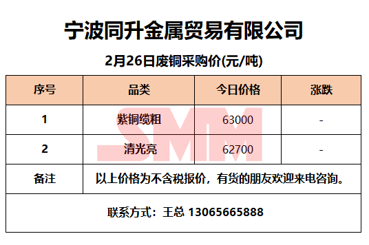 今日宁波同升金属,废铜采购报价已更新,有货的朋友欢迎联系我们!