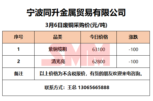 今日宁波同升金属,废铜采购报价已更新,有货的朋友欢迎联系我们!