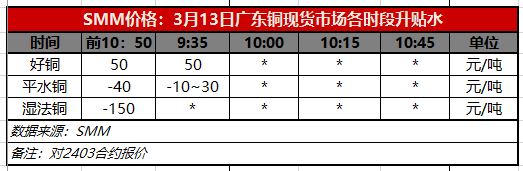 3月13日广东铜现货市场各时段升贴水(第一时段9:30)【SMM价格】