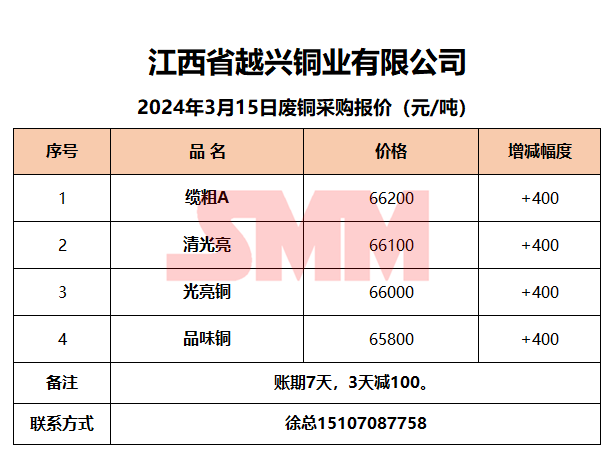 今日江西越兴,废铜采购报价已更新,有货的朋友欢迎联系我们!