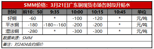 3月21日广东铜现货市场各时段升贴水(第三时段10:15)【SMM价格】