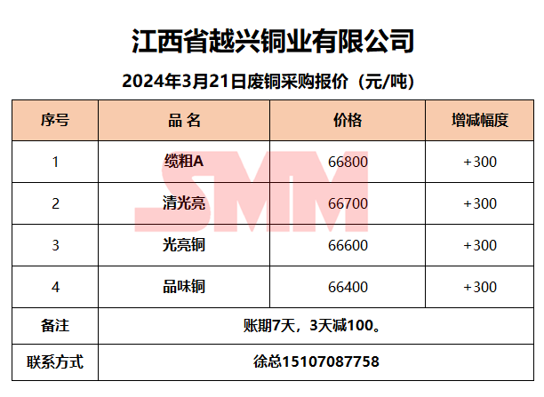 今日江西越兴,废铜采购报价已更新,有货的朋友欢迎联系我们!