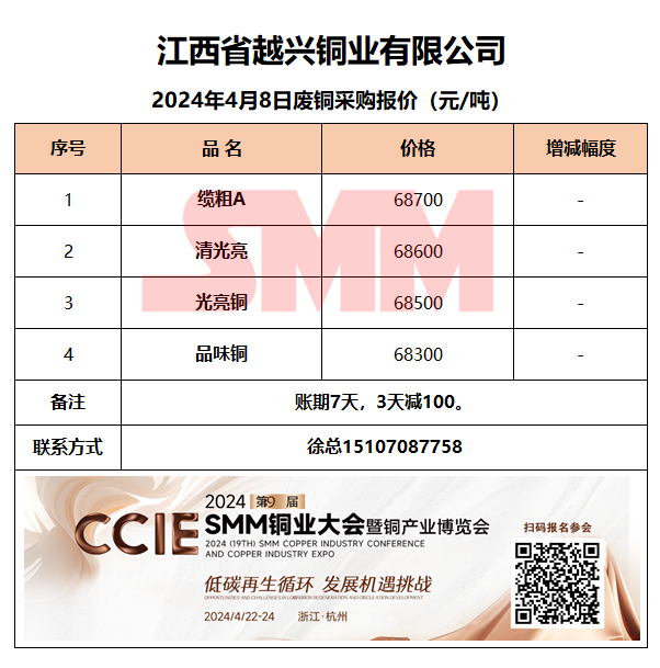 4月8日江西越兴 废铜采购报价