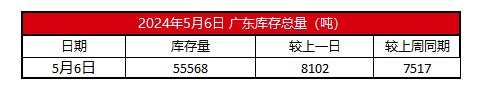 2024年5月6日广东电解铜库存【SMM数据】
