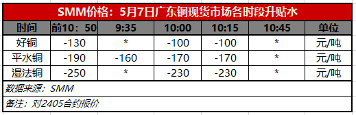 5月7日广东铜现货市场各时段升贴水(第三时段10:15)【SMM价格】