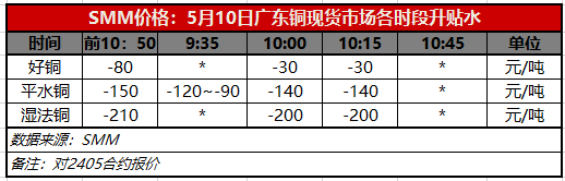 5月10日广东铜现货市场各时段升贴水(第三时段10:15)【SMM价格】