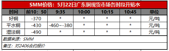 5月22日广东铜现货市场各时段升贴水(第一时段9:30)【SMM价格】