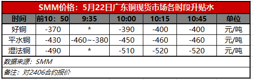 5月22日广东铜现货市场各时段升贴水(第四时段10:45)【SMM价格】
