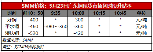 5月23日广东铜现货市场各时段升贴水(第二时段10:00)【SMM价格】