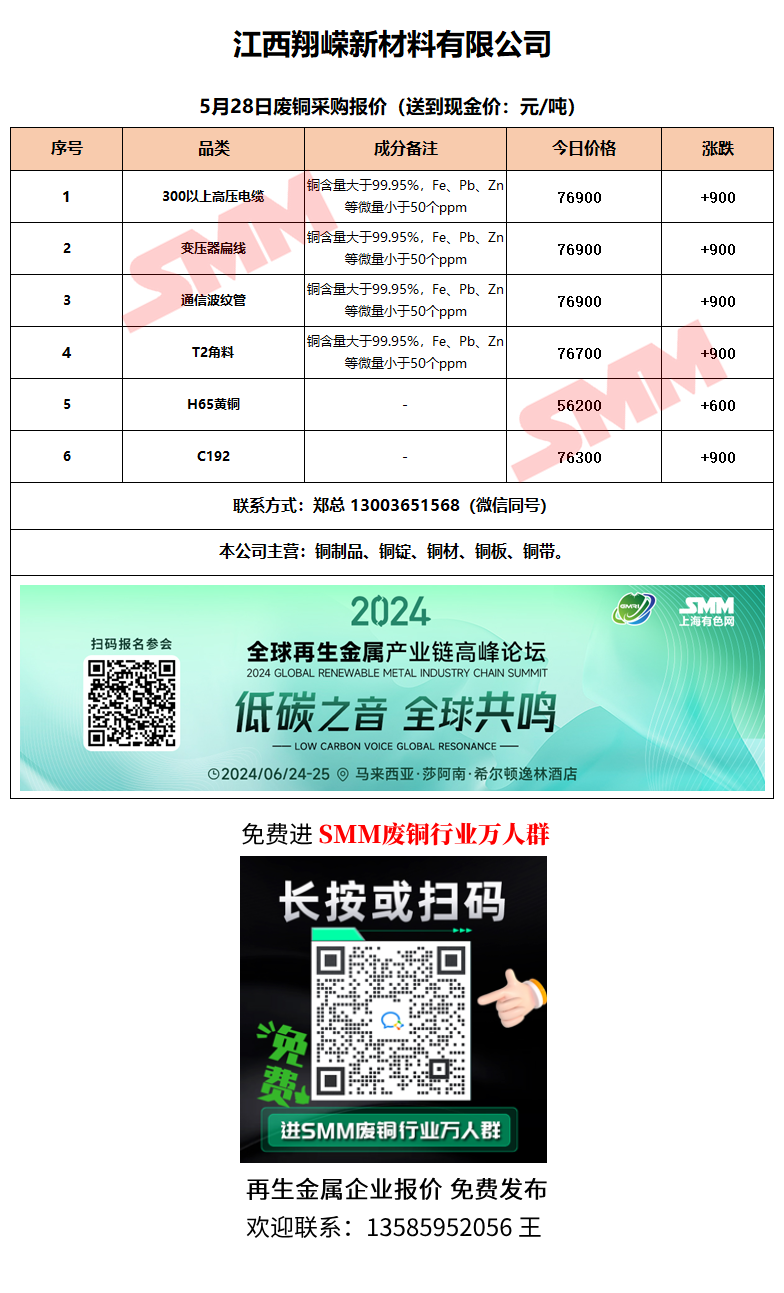 今日江西翔嵘新材料 废铜采购报价已更新,有货的朋友欢迎联系我们!