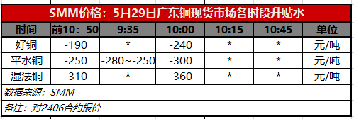 5月29日广东铜现货市场各时段升贴水(第二时段10:00)【SMM价格】