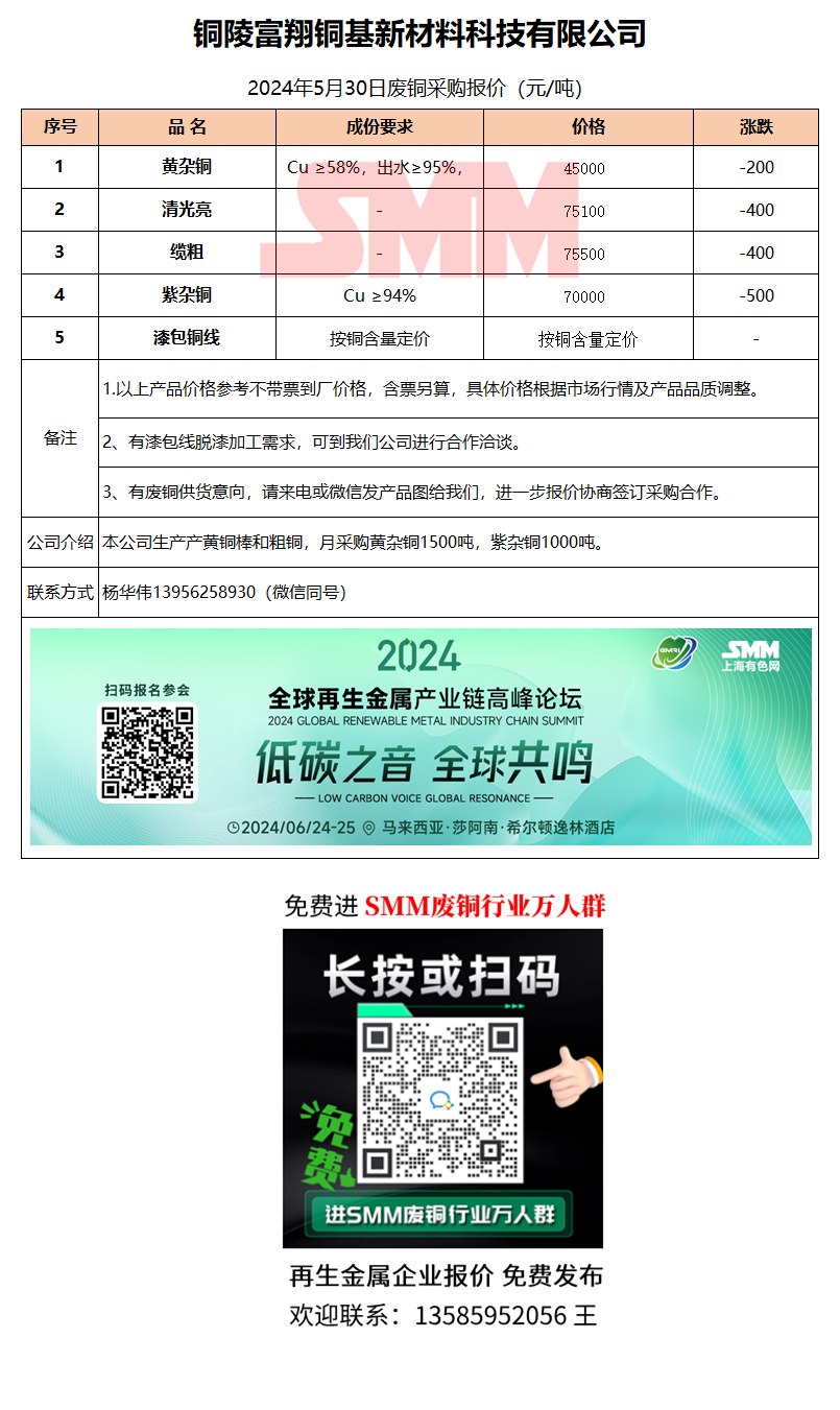 今日铜陵富翔 废铜采购报价已更新,有货的朋友欢迎联系我们!