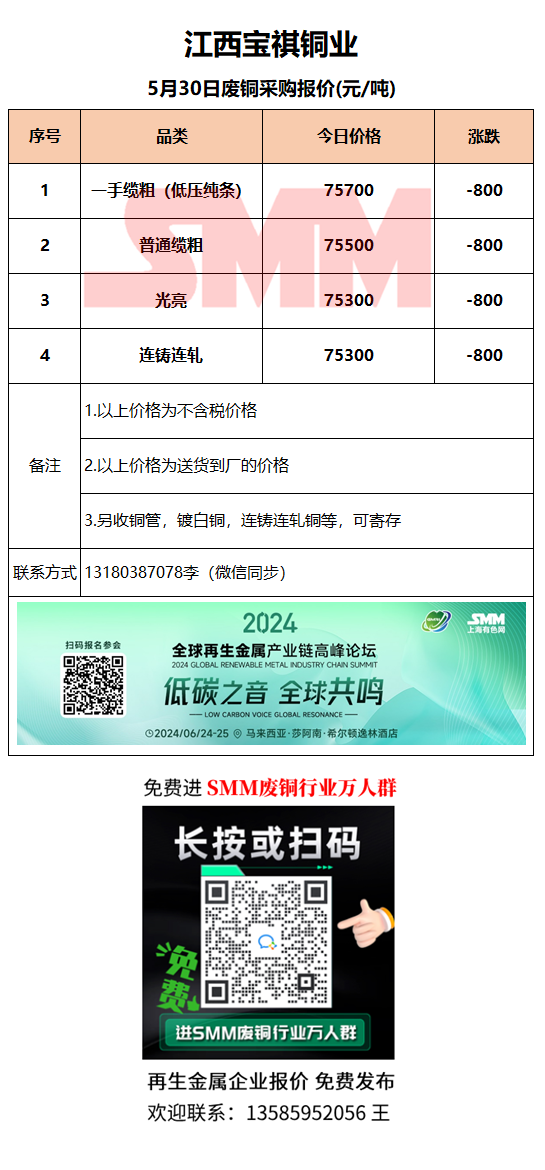 5月30日江西宝祺 废铜采购报价