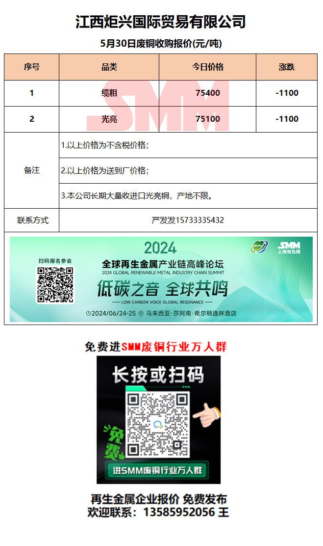 5月30日江西炬兴 废铜采购报价