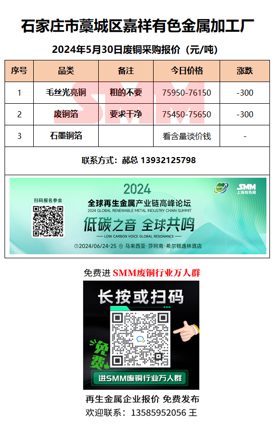 今日嘉祥有色金属 废铜采购报价已更新,有货的朋友欢迎联系我们!
