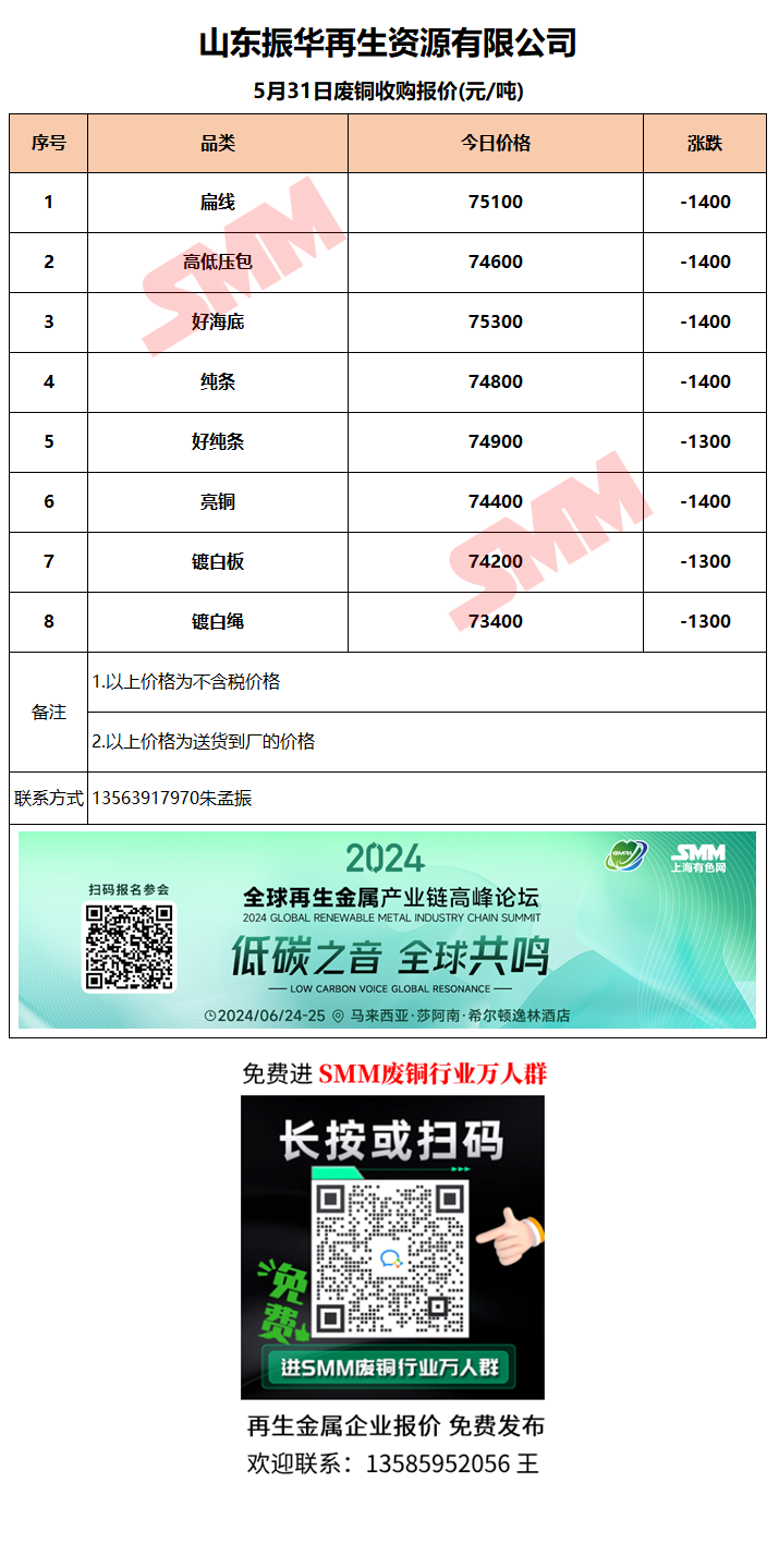 今日山东振华 废铜采购报价已更新,有货的朋友欢迎联系我们!